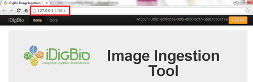 - The idigbio application user interface will be brought up automatically in your default web browser. If not, please input the URL 127.0.0.1:32601 in your web browser.